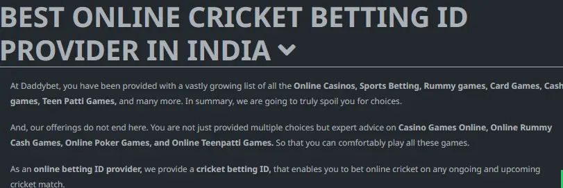 Daddybet offers Indian players a huge mix of sports events and casino options. Major spectacles and homegrown classics, high odds, varied markets, and engaging Live action!